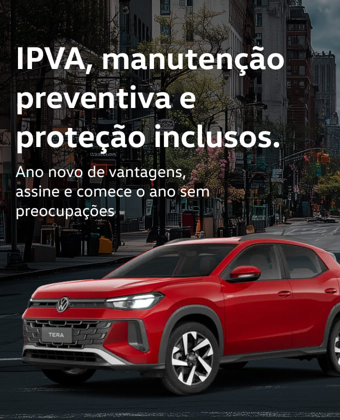 Você escolhe o veículo, o plano e a franquia mensal. Entregamos um Volkswagen 0 km com documentação, IPVA, licenciamento, emplacamento, seguro e manutenção preventiva inclusos.
